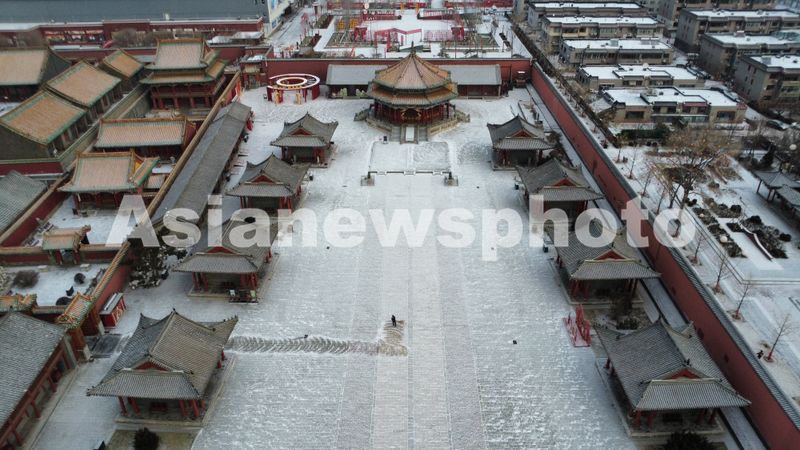 1月8日,在辽宁省沈阳市拍摄的沈阳故宫雪后景色(无人机照片)。