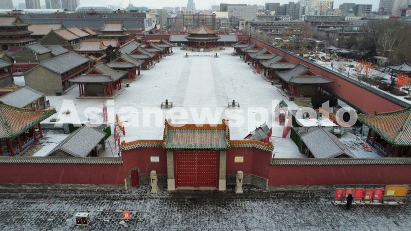 1月8日,在辽宁省沈阳市拍摄的沈阳故宫雪后景色(无人机照片)。