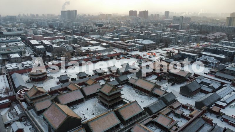 1月8日,在辽宁省沈阳市拍摄的沈阳故宫雪后景色(无人机照片)。