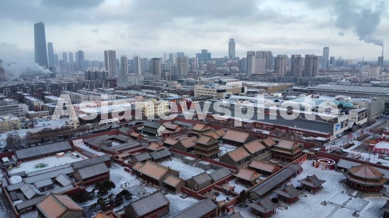 1月8日,在辽宁省沈阳市拍摄的沈阳故宫雪后景色(无人机照片)。