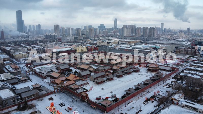 1月8日,在辽宁省沈阳市拍摄的沈阳故宫雪后景色(无人机照片)。