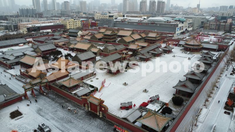 1月8日,在辽宁省沈阳市拍摄的沈阳故宫雪后景色(无人机照片)。