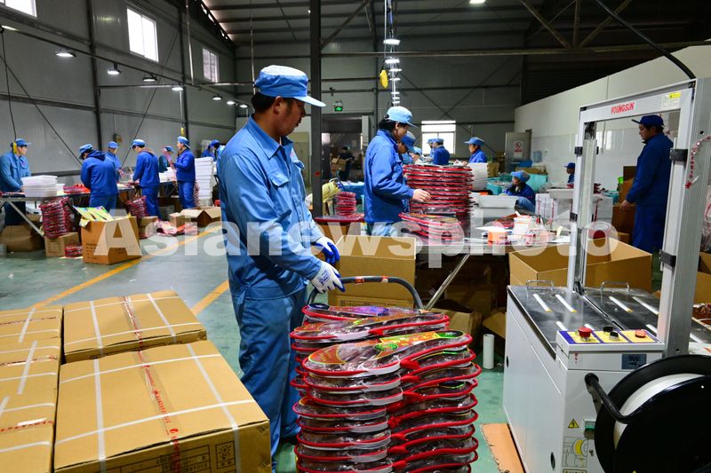 图片说明:2025年1月8日,在位于浙江省金华市浦江县的金华金贸火腿有限公司的生产车间里,工人们正忙着在称重、包装、搬运金华火腿,供应春节市场。