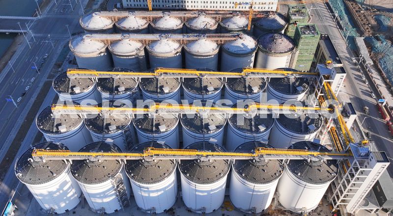 2025年1月9日,位于江苏省淮安市清江浦区苏粮淮安粮食仓储物流项目现场,工人抵御低温严寒,加紧施工作业,确保工程建设进度。