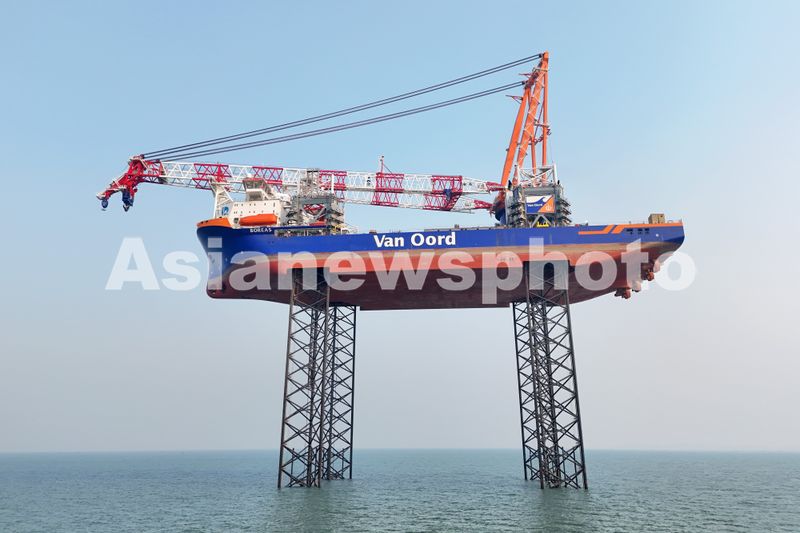 山东烟台:全球最大的自升自航式海上风电安装船交付 查看组图