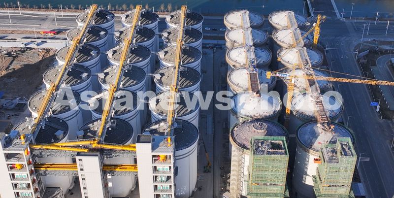 2025年1月9日,位于江苏省淮安市清江浦区苏粮淮安粮食仓储物流项目现场,工人抵御低温严寒,加紧施工作业,确保工程建设进度。