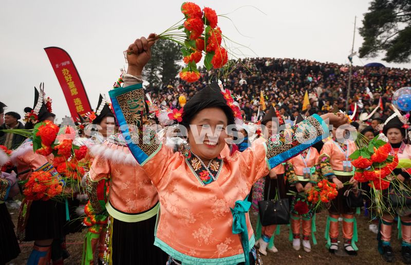 2025年1月10日,广西融水苗族自治县良寨乡国里苗寨举办党横坡会芦笙节,来自广西、贵州等地的苗、瑶、侗等少数民族同胞,穿着节日的盛装,欢聚一堂,吹芦笙、跳踩堂舞,吸引众多市民和游客前来观赏,喜迎农历新年的到来。