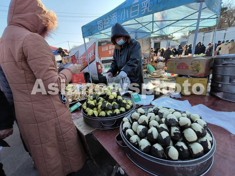 图片说明:2025年1月15日,沈阳蒲河大集迎来了新春前的热闹盛况,人声鼎沸,热闹非凡,处处洋溢着浓浓的节日氛围。市民选购粘豆包