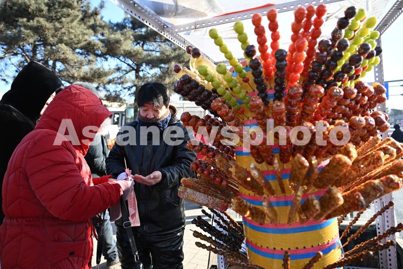 图片说明:2025年1月15日,沈阳蒲河大集迎来了新春前的热闹盛况,人声鼎沸,热闹非凡,处处洋溢着浓浓的节日氛围。市民在买冰糖葫芦。