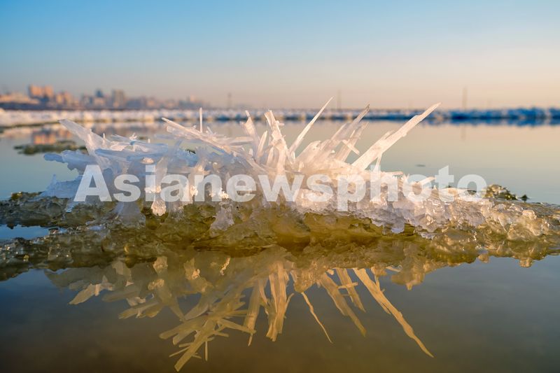 图片说明:2025年1月16日拍摄的山西省运城盐湖“硝花”景观。