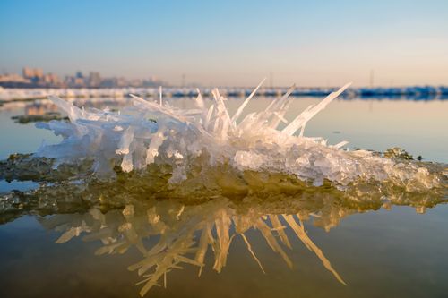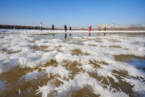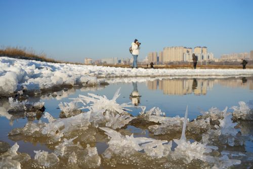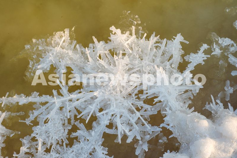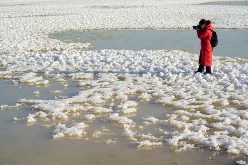 图片说明:2025年1月16日拍摄的山西省运城盐湖“硝花”景观。