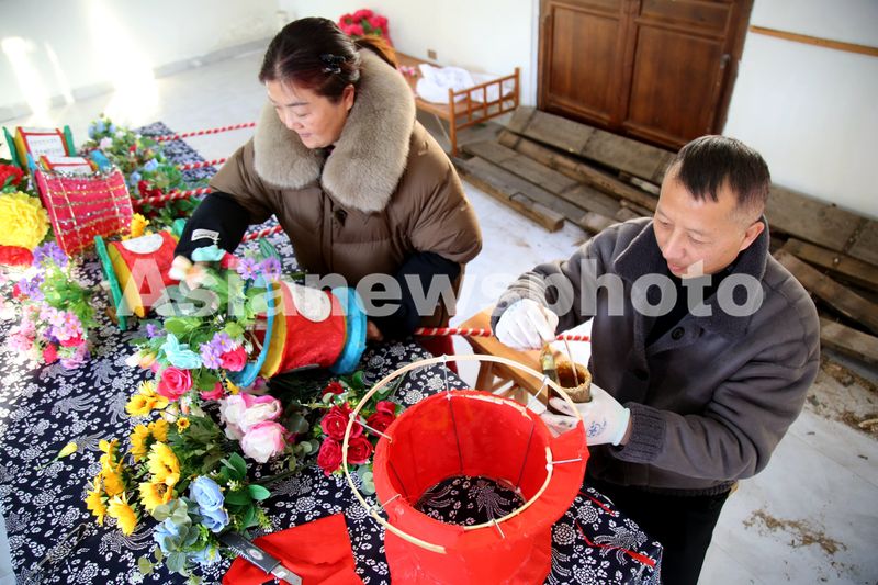 2025年1月16日,在湖北省十堰市郧阳区柳陂镇龙韵村,花灯匠人正制作凤凰灯。