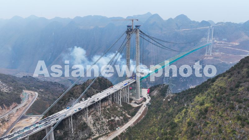 图片说明:1月17日,在建世界第一高桥——贵州六安高速公路花江峡谷大桥成功合龙。