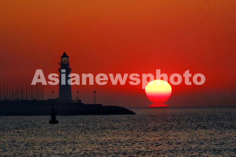图片说明:2025年1月20日早晨,青岛浮山湾外黃海海面,太阳冲破雾汽的覆盖以奇妙的梭形方式徐徐出水,这一自然现象叫海滋。