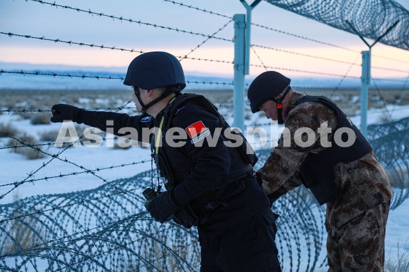 图片说明:2025年1月19日,民警与护边员实地检查边境铁丝网和边境防控设施运行情况。