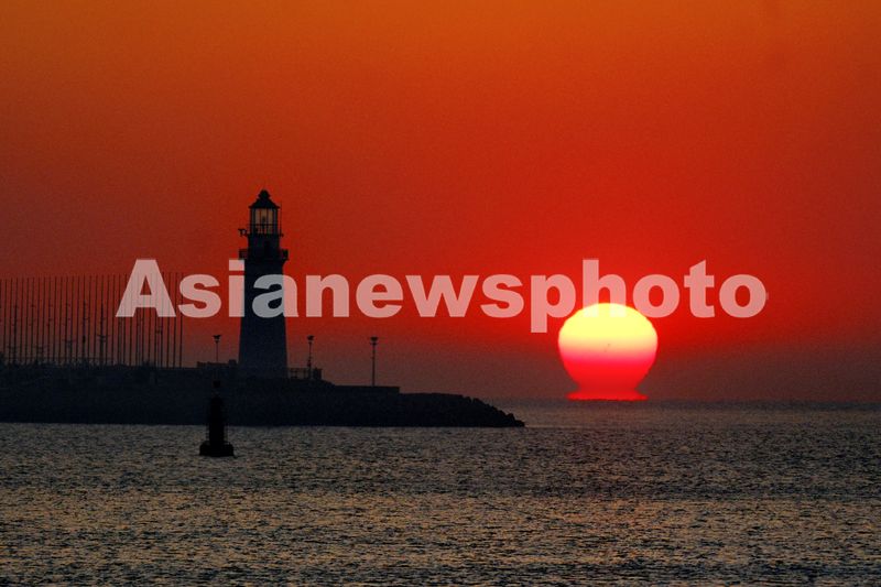 图片说明:2025年1月20日早晨,青岛浮山湾外黃海海面,太阳冲破雾汽的覆盖以奇妙的梭形方式徐徐出水,这一自然现象叫海滋。