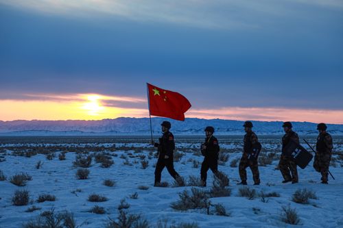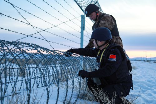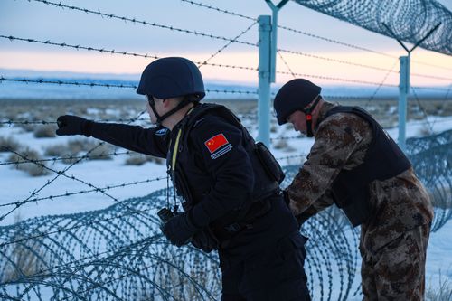 图片说明:2025年1月19日,红星边境警务站民警正在开展常态化巡边踏查。