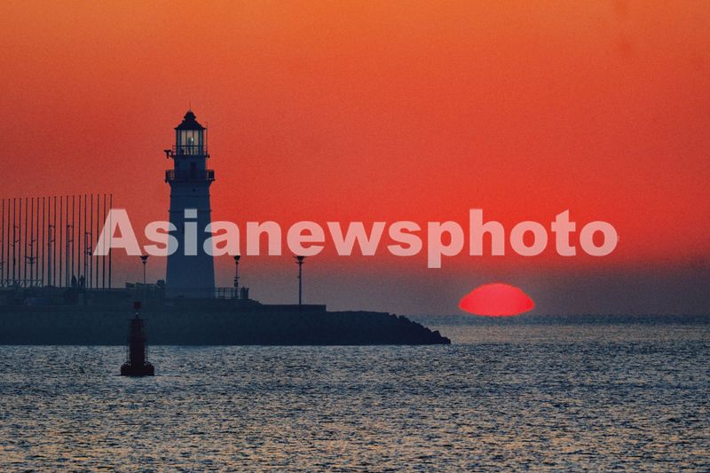 图片说明:2025年1月20日早晨,青岛浮山湾外黃海海面,太阳冲破雾汽的覆盖以奇妙的梭形方式徐徐出水,这一自然现象叫海滋。