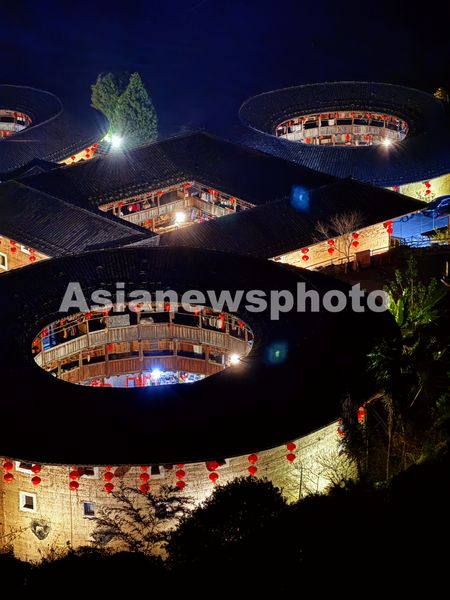 1月15日,福建省漳州市南靖县,“四菜一汤”田螺坑土楼群夜景。