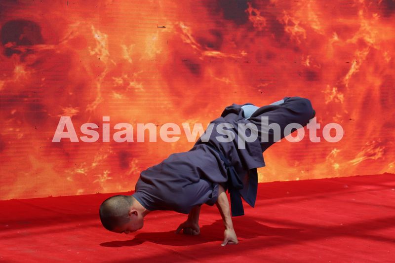 1月19日,肯尼亚首都内罗毕中国春节庙会活动现场的少林功夫表演。