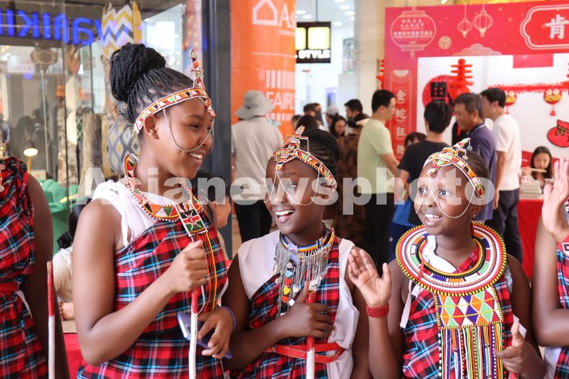 1月19日,肯尼亚首都内罗毕中国春节庙会活动现场的马赛族学生。