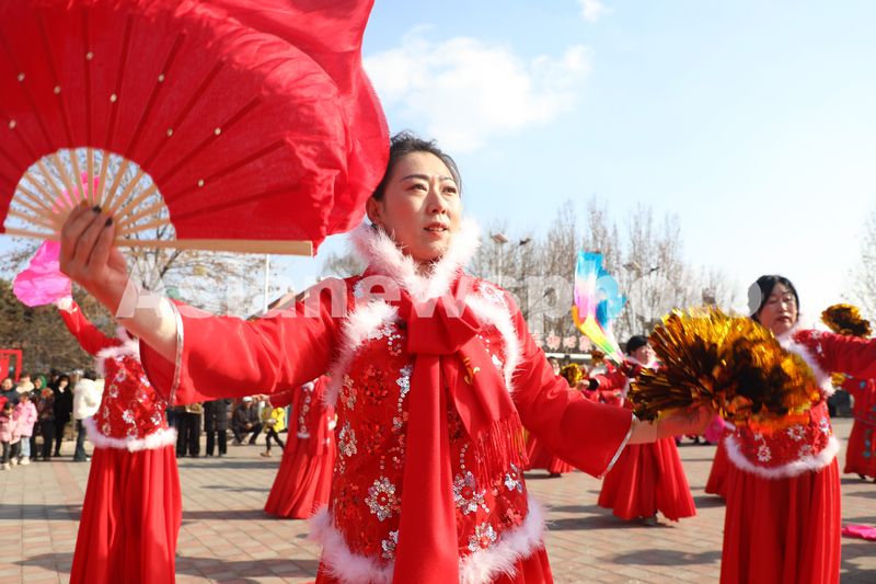 2025年2月2日,在河北省唐山市丰润区泉河头镇亢各庄村,村民在表演舞蹈欢庆新年。