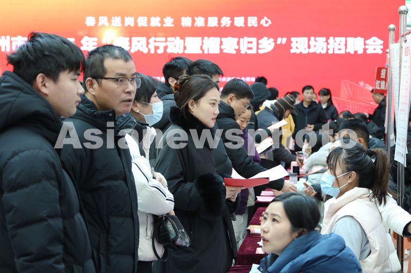 2025年2月4日,求职者在山东省滕州市2025年“春风行动暨榴枣归乡”现场招聘会上了解就业信息。新春伊始,山东省滕州市举办2025年“春风行动暨榴枣归乡”现场招聘会,为求职群体提供多个门类的工作岗位,助力企业复工复产。