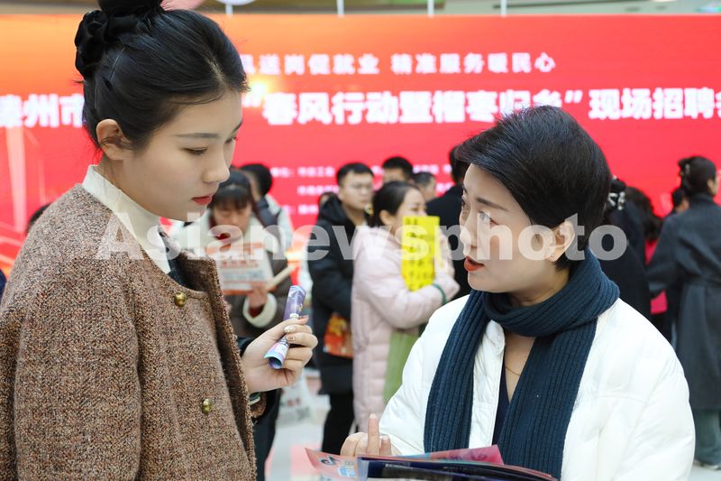 2025年2月4日,求职者在山东省滕州市2025年“春风行动暨榴枣归乡”现场招聘会上了解就业信息。