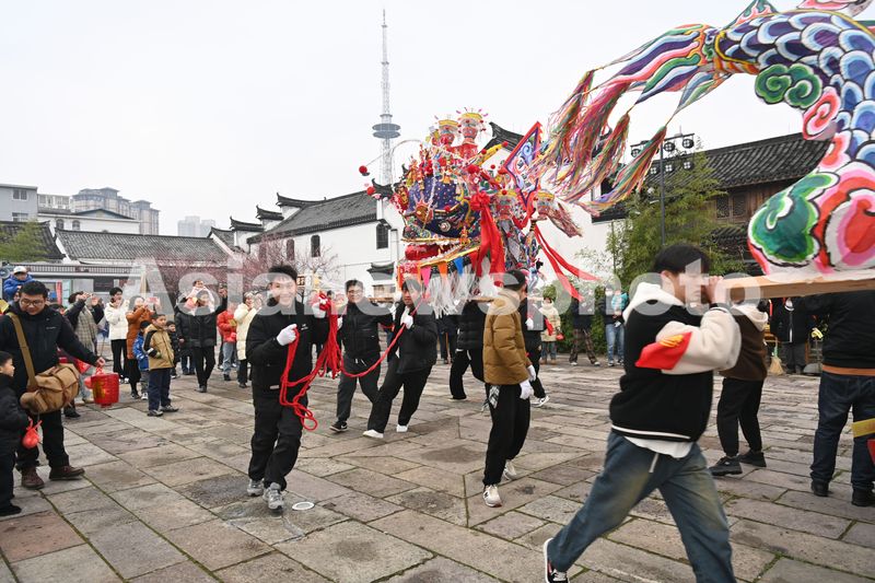 2025年2月3日,浙江省东阳市卢宅古建筑群内,龙灯进行巡游展演,吸引了众多市民和游客驻足观看。春节期间,浙江省东阳市举办2025年新春庙会非遗展演活动,让市民在喜庆祥和的节日氛围中享受精彩纷呈的传统文化盛宴。