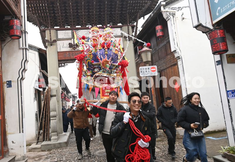 2025年2月3日,浙江省东阳市卢宅古建筑群内,龙灯进行巡游展演,吸引了众多市民和游客驻足观看。春节期间,浙江省东阳市举办2025年新春庙会非遗展演活动,让市民在喜庆祥和的节日氛围中享受精彩纷呈的传统文化盛宴。