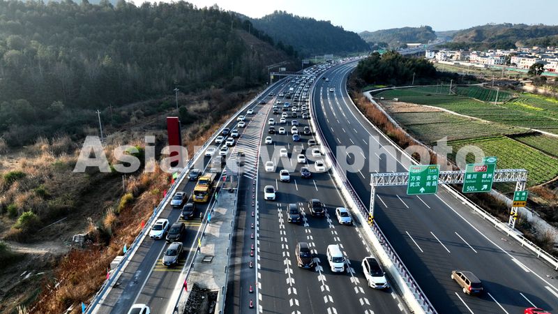 图片说明:2025年2月4日,G45大广高速公路江西遂川段,由北往南车道车流量大,行驶缓慢。当天是正月初七,春节假期进入尾声,各地迎来返程客流高峰 。
