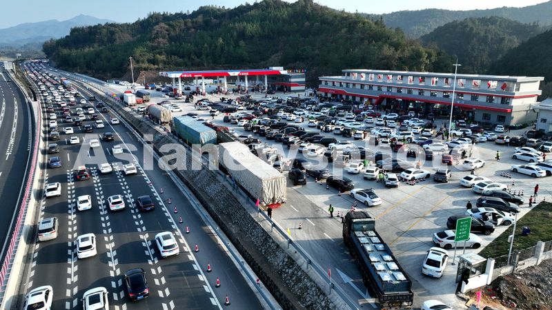 图片说明:2025年2月4日,G45大广高速公路江西遂川段,由北往南车道车流量大,行驶缓慢。当天是正月初七,春节假期进入尾声,各地迎来返程客流高峰 。