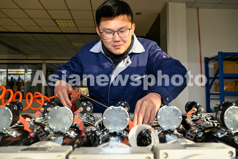 2025年2月5日,在安徽省合肥庐阳经济开发区力威汽车油泵有限公司,工人正在抓紧生产叉车、新能源动车转向泵及控制阀。据悉,该企业年初七正式复工。当天已有90%员工返岗。企业利用数字化工厂、自动化设备、为员工发放开工红包等多种形式,补齐当下人员缺口,开足马力赶制订单,全力冲刺新年开门红。