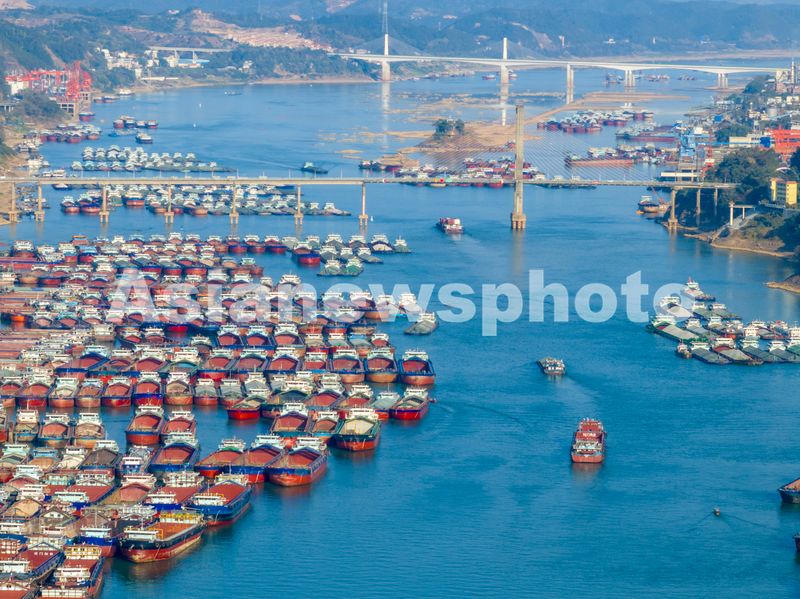 图片说明:2025年2月4日,珠江上游西江广西梧州市万秀区段水域,货船在航道上有序航行。