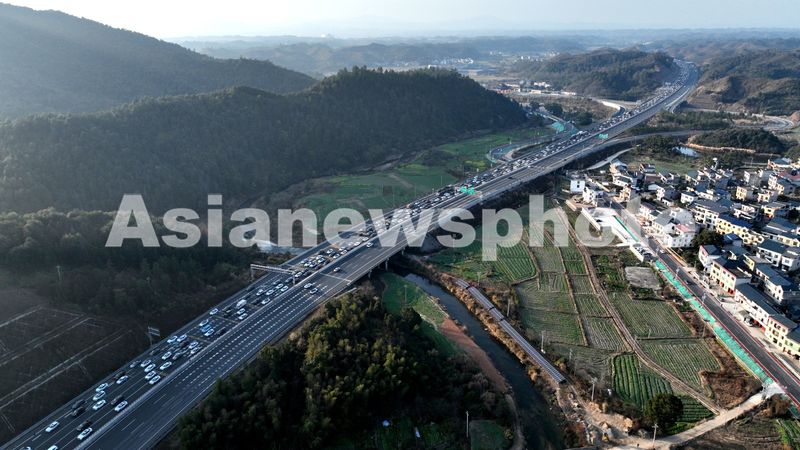 图片说明:2025年2月4日,G45大广高速公路江西遂川段,由北往南车道车流量大,行驶缓慢。当天是正月初七,春节假期进入尾声,各地迎来返程客流高峰 。