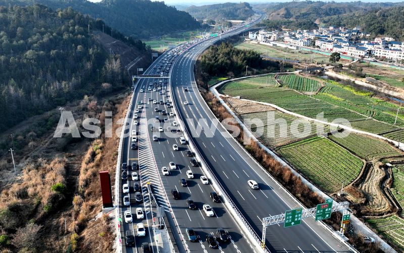 图片说明:2025年2月4日,G45大广高速公路江西遂川段,由北往南车道车流量大,行驶缓慢。当天是正月初七,春节假期进入尾声,各地迎来返程客流高峰 。