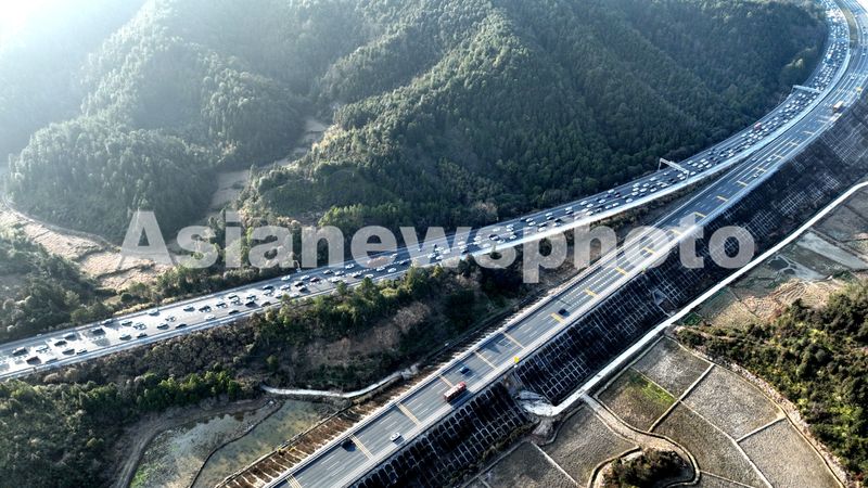 图片说明:2025年2月4日,G45大广高速公路江西遂川段,由北往南车道车流量大,行驶缓慢。当天是正月初七,春节假期进入尾声,各地迎来返程客流高峰 。