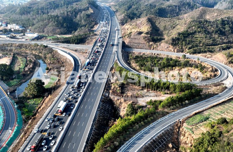 图片说明:2025年2月4日,G45大广高速公路江西遂川段,由北往南车道车流量大,行驶缓慢。当天是正月初七,春节假期进入尾声,各地迎来返程客流高峰 。