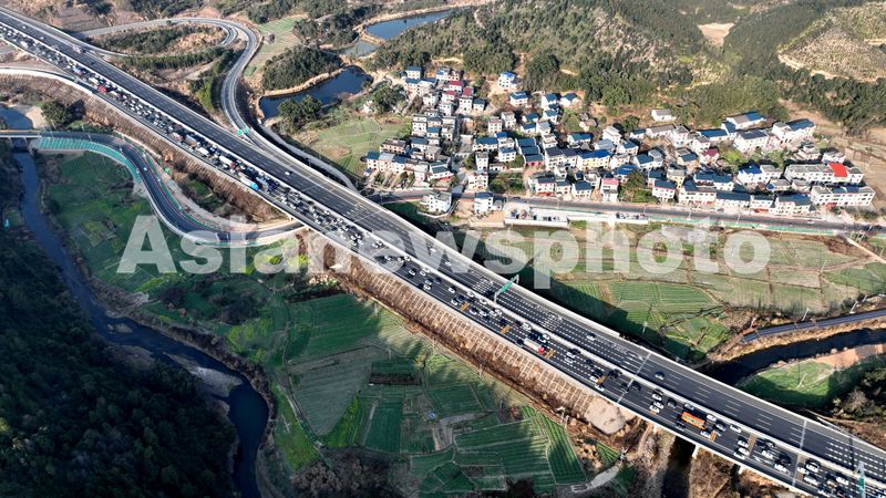 图片说明:2025年2月4日,G45大广高速公路江西遂川段,由北往南车道车流量大,行驶缓慢。当天是正月初七,春节假期进入尾声,各地迎来返程客流高峰 。
