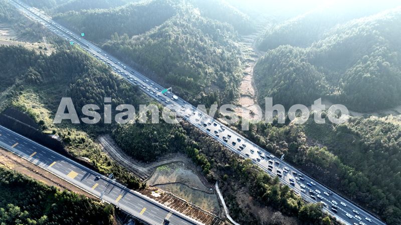 图片说明:2025年2月4日,G45大广高速公路江西遂川段,由北往南车道车流量大,行驶缓慢。当天是正月初七,春节假期进入尾声,各地迎来返程客流高峰 。