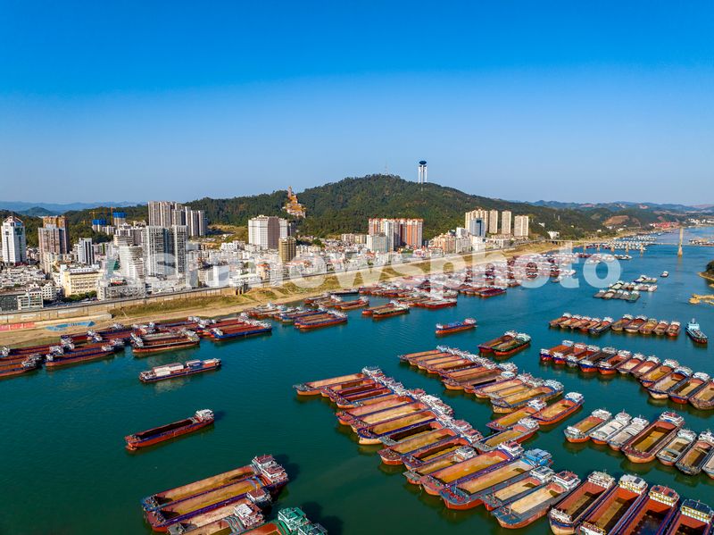 图片说明:2025年2月4日,珠江上游西江广西梧州市万秀区段水域,货船在航道上有序航行。