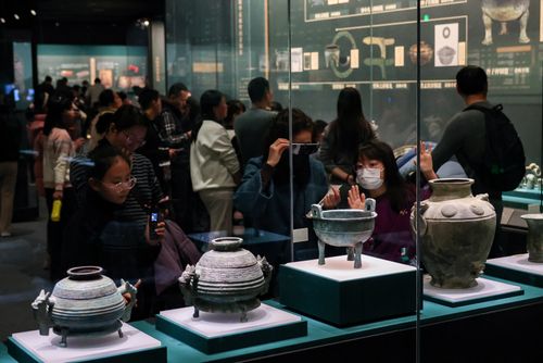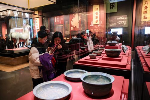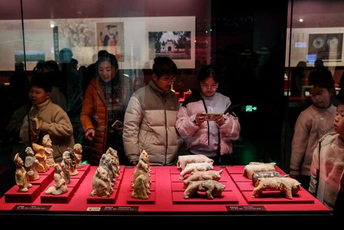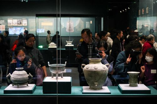 图片说明:2025年2月4日,游客在湖北省襄阳市博物馆参观。