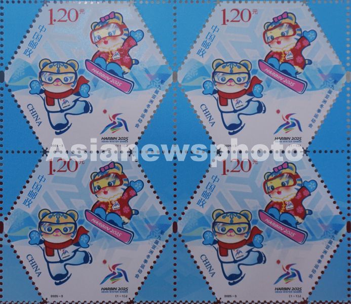 图片说明:2025年2月7日,在杭州拍摄到的第九届亚洲冬季运动会纪念邮票。