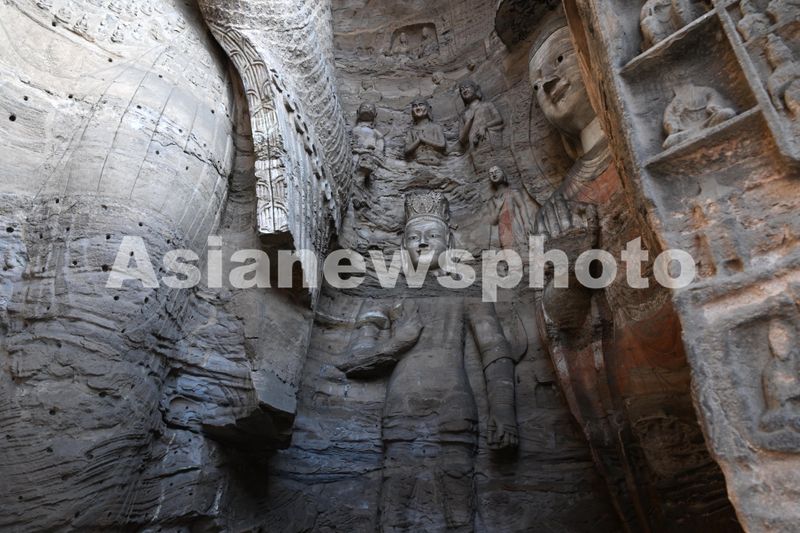图片说明:2025年1月31日,游客在山西省大同市云冈石窟景区游览观光。