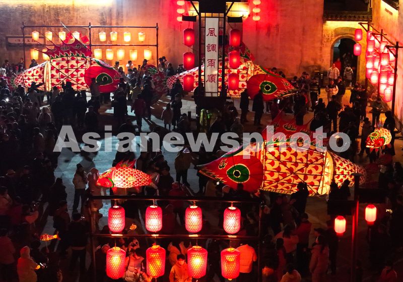 当日是农历正月初九,非遗民俗“汪满田鱼灯”在安徽省黄山市徽州区呈坎古村巡游表演,鱼灯游过小桥流水倒影闪烁,在灿烂灯火的映衬下流光溢彩,吸引了众多游客观赏体验,场面唯美浪漫。