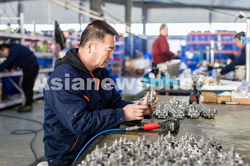 图片说明:2025年2月10日,内蒙古呼和浩特蒙瓦阀业有限公司生产车间,工人在赶制海外新订单产品,奋战首季“开门红”。