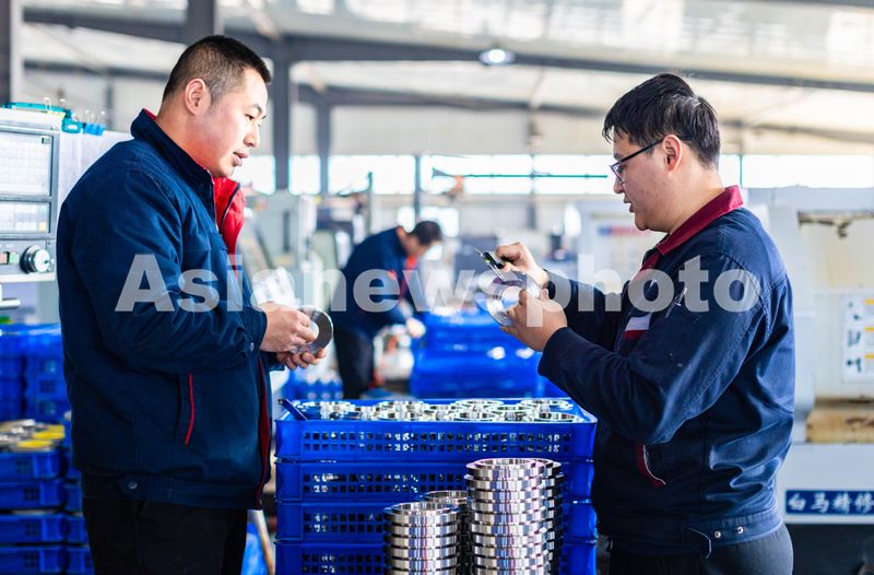 图片说明:2025年2月10日,内蒙古呼和浩特蒙瓦阀业有限公司生产车间,工作人员对即将发往海外市场的订单产品进行质检。