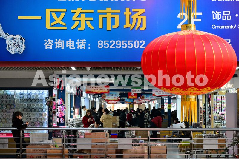 2025年2月9日,浙江金华,义乌国际商贸城蛇年开市首日,商户布置铺面上新货,喜迎国内外客商,市场里人气兴旺。