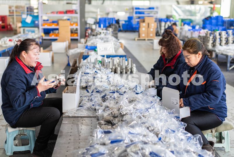 图片说明:2025年2月10日,内蒙古呼和浩特蒙瓦阀业有限公司生产车间,工人在赶制海外新订单产品,奋战首季“开门红”。