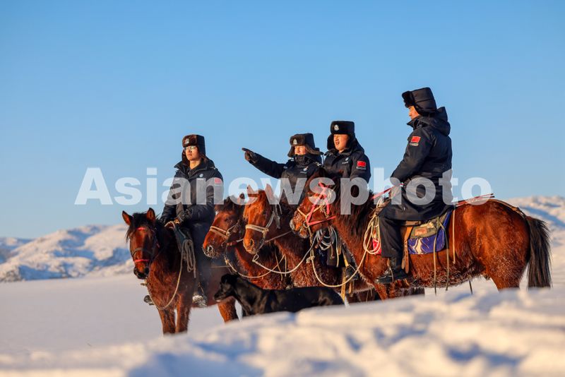图片说明:2025年2月10日,加郎阿什边境派出所民警在中哈边境一线开展边境踏查。